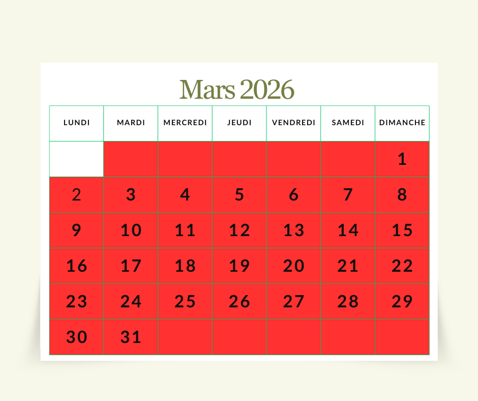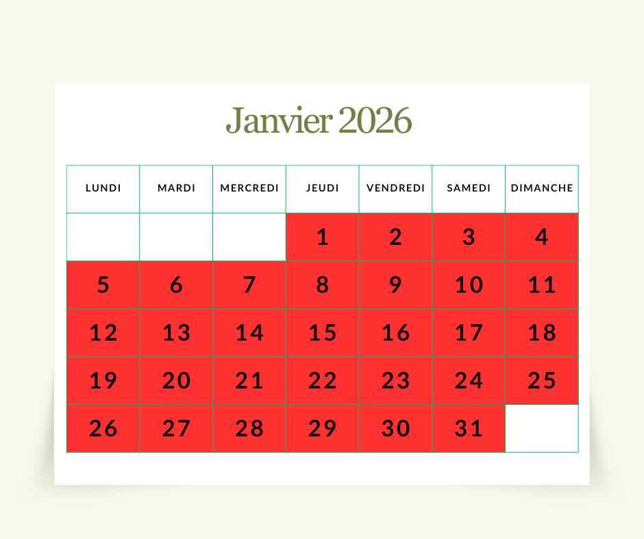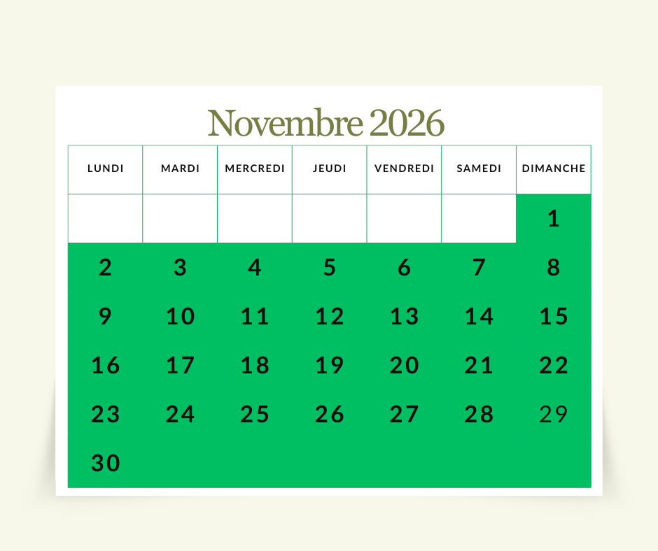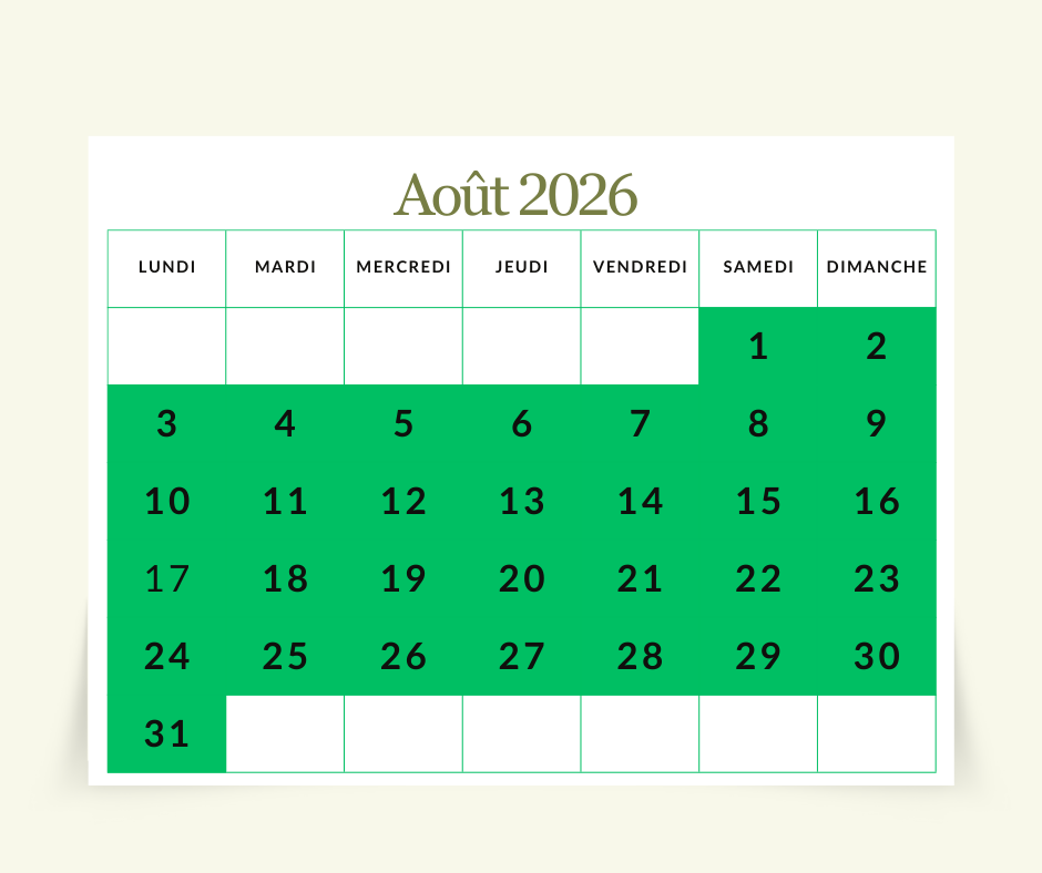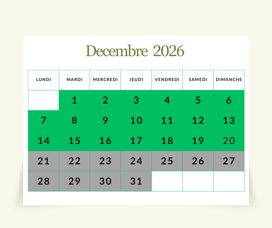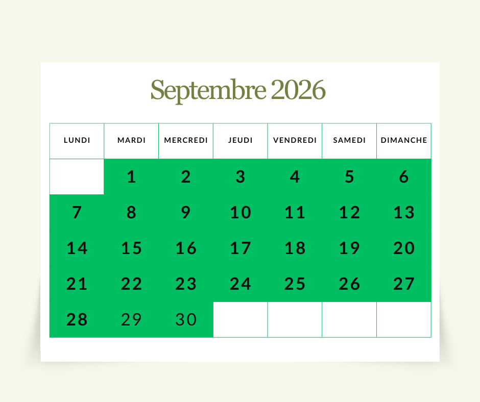 Acompte de 30% lors de la réservation.